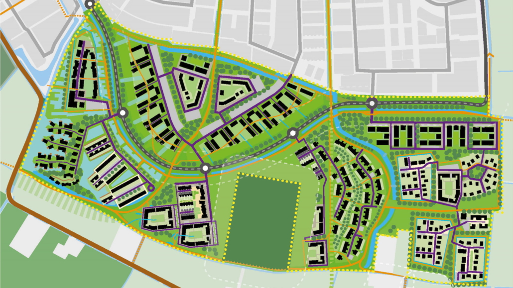 In fase 2 zijn de ontwerp-uitgangspunten in een gezamenlijke opdracht van de gemeente en de betrokken ontwikkelende partijen uitgewerkt tot een globaal stedenbouwkundig plan. In dat plan op hoofdlijnen zijn het woningbouwprogramma, de verkeersstructuur, het groen in de wijk en de verkavelingsstructuur verder ingevuld. De stedenbouwkundige hoofdopzet laat ook een schatting van het aantal en type woningen zien, waarmee de haalbaarheid van het plan kan worden ingeschat. Het resultaat is een set ruimtelijke kaders en uitgangspunten die dient als basis voor het op te stellen stedenbouwkundig plan.